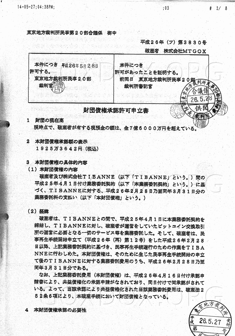 The trustee has noted that a simple withdrawal from a wallet does not indicate when the BTC was sold. He is correct. We will need to look to other sources to draw a conclusion. Fortunately, recently uncovered documents from inside Tokyo District Court provide clues.